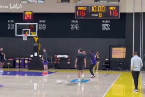 命中率還行?詹姆斯從湖人發(fā)展聯(lián)盟回歸主隊訓(xùn)練!猛練定點三分!