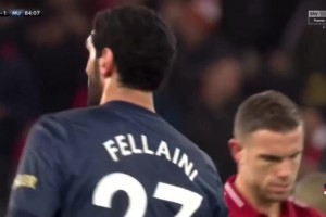 費(fèi)萊尼在英超聯(lián)賽的最后一腳射門擊中安菲爾德球場的一名工作人員