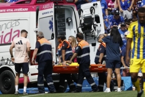 奧維耶多球員頭部碰撞后送醫(yī),初步檢查結(jié)果為顱腦嚴(yán)重?fù)p傷