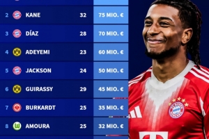 德甲進攻球員身價排行:奧利塞1.3億歐居首,凱恩7500萬歐次之