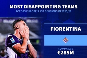 德轉(zhuǎn)盤點(diǎn)本賽季最令人失望球隊(duì):佛羅倫薩、森林、紐卡、畢巴在列