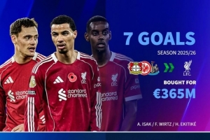 利物浦今夏近4億砸維爾茨、?;倏?、伊薩克共7球,迪亞斯已11球