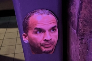 蝦仁豬心!俠記曬照:達(dá)拉斯一酒吧外的垃圾桶上貼著哈里森頭像
