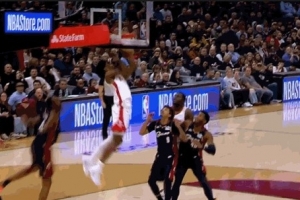 嗖的一下就起來了!阿門變向突破鉆人縫 直接雙手暴扣!