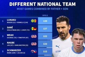 德轉(zhuǎn)盤點(diǎn)不同國家隊(duì)父子:盧卡庫父子、齊達(dá)內(nèi)父子、維阿父子在列