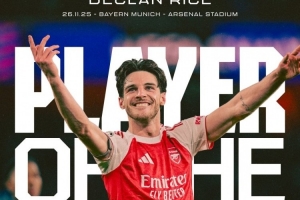 實(shí)至名歸!賴斯當(dāng)選對(duì)陣拜仁一役阿森納隊(duì)內(nèi)最佳球員