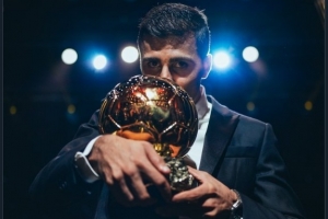 曼城官推曬羅德里親吻金球獎?wù)掌喝ツ杲袢?,羅德里獲得金球獎