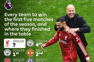 本賽季利物浦是英超歷史第14支開局5連勝球隊(duì),此前4隊(duì)奪冠