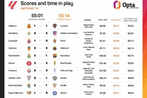 國(guó)家德比總時(shí)長(zhǎng)106分52秒本輪最長(zhǎng),但凈比賽時(shí)長(zhǎng)僅56分20秒列第5