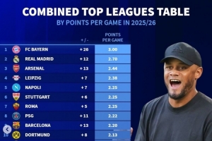 巴薩掉隊!德轉(zhuǎn)更新本賽季五大聯(lián)賽場均拿分榜:仁皇槍分列前三