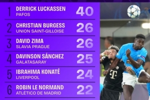 本賽季歐冠贏得對抗榜:馬修斯-席爾瓦33次第一,佩德里21次第八
