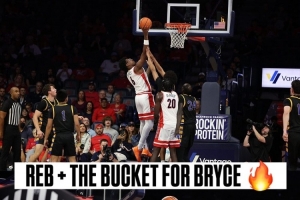 布萊斯摘下前場籃板補籃 詹姆斯轉(zhuǎn)發(fā)賽場照:耶 6號!