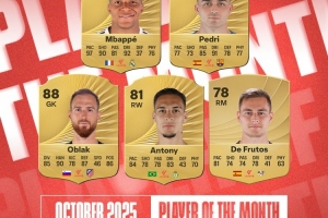 西甲公布10月份最佳球員候選名單:姆巴佩、佩德里、安東尼在列