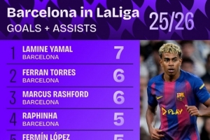 多點(diǎn)開花!本賽季巴薩5名球員聯(lián)賽參與進(jìn)球5+,五大聯(lián)賽首隊(duì)