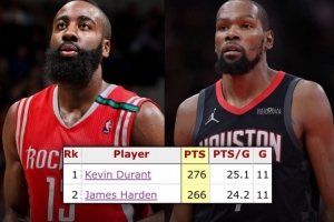 杜蘭特火箭生涯前11戰(zhàn)合砍276分 超越哈登居隊史第一
