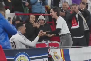 一位皇馬球迷在安菲爾德球場向女友求婚,女友答應(yīng)了