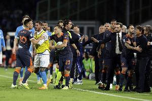 “我接受采訪是因?yàn)槲蚁M麨檎麄€(gè)體系做出的貢獻(xiàn),因?yàn)槲覍?shí)在無(wú)法理解這個(gè)點(diǎn)球。拋開那不勒斯理應(yīng)獲勝這一點(diǎn),他們?cè)谧詈蟀胄r(shí)確實(shí)證明了這一點(diǎn)。那個(gè)點(diǎn)球源于助理裁判的判斷,比賽中有時(shí)候是VAR介入,有時(shí)候是助理裁判推翻原本站位極佳的主裁判。但這次主裁判第一時(shí)間并沒(méi)有吹罰點(diǎn)球,他的位置無(wú)可挑剔。這種情況本應(yīng)交由VAR處理,而從那一刻起,比賽走向變得微妙。隨后那不勒斯用表現(xiàn)證明了勝利,他們?nèi)σ愿?,向勝者致敬?!?/p>