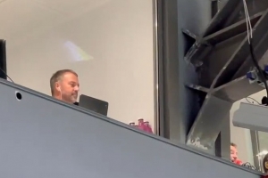巴薩主帥弗里克由于停賽無法再場邊指揮球隊(duì),他出現(xiàn)在伯納烏看臺上,將遠(yuǎn)程觀察比賽形勢。