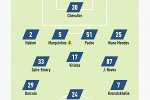 隊(duì)報(bào)預(yù)測(cè)巴黎首發(fā):巴爾科拉、馬尤盧、K77三叉戟,登貝萊替補(bǔ)