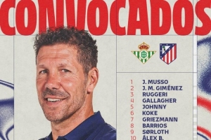 體育資訊10月27日訊 北京時間明天凌晨4點,馬競將在西甲第10輪比賽中客場對陣貝蒂斯,馬競公布了此役的球員名單,卡爾多索回歸。