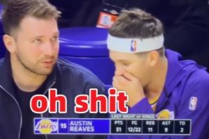 東契奇向里夫斯展示扭傷的手指 里夫斯不敢相信脫口而出Oh Shit!