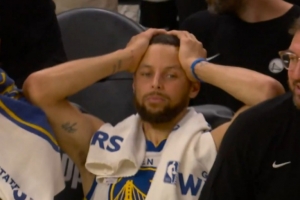 小子偷我技能包?波斯特彩虹三分命中 場(chǎng)下庫(kù)里雙手抱頭生無可戀