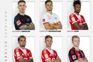 德甲10月最佳球員候選:拜仁3將奧利塞、迪亞斯、基米希在列