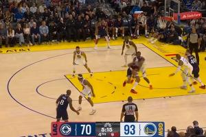 庫(kù)里命中三分之后一回合,科爾將其換下。