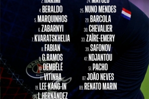 巴黎對尼斯大名單:阿什拉夫、李剛?cè)?、法比安回歸,杜埃缺席