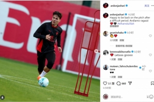 亞沙里社媒曬恢復(fù)訓(xùn)練照片:很高興度過艱難時期后重返球場