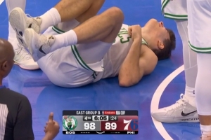 不講武德!恩比德被犯規(guī)后空中蜷縮 踢到對(duì)方敏感部位&感覺(jué)很疼