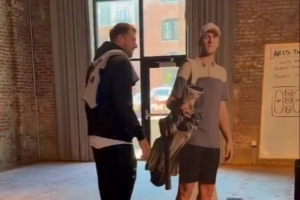 整活!東契奇一把推倒里夫斯等高紙板 兩人高爾夫推桿不忘互損