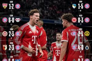 15場(chǎng)怒砍54球!拜仁15連勝僅2場(chǎng)低于3球,下周打巴黎月底打阿森納