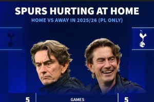 主場(chǎng)蟲+客場(chǎng)龍!熱刺本賽季英超主場(chǎng)1勝1平3負(fù),客場(chǎng)4勝1平