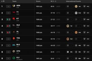 KT在戰(zhàn)勝GEN后升至第三,HLE/AL名次各下降一名。