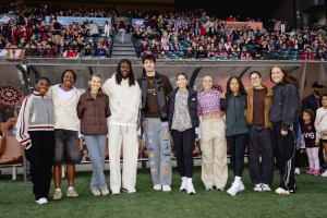 足籃聯(lián)動!霍勒迪&阿夫迪亞造訪女足波特蘭荊棘隊 阿福顛球秀球技
