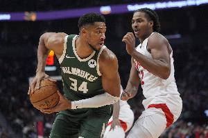 本賽季字母哥場均砍下32.3分12.6板6.3助 投籃命中率高達67.7%