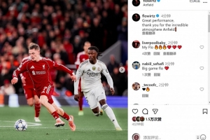 此役維爾茨為利物浦首發(fā)出戰(zhàn),送出5記關(guān)鍵傳球,賽后他在社交媒體上曬出比賽照片,并寫道:“精彩的表現(xiàn),感謝你們在安菲爾德營造的非凡氛圍!”
