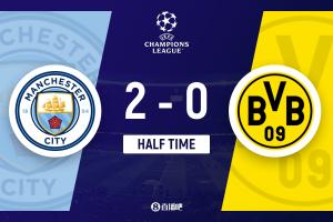 半場(chǎng)-曼城2-0多特 福登遠(yuǎn)射建功哈蘭德爆射破門(mén)