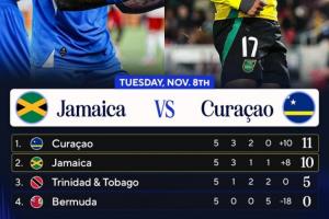人口僅15萬!庫拉索領(lǐng)先牙買加1分 末輪直接對話不敗即首進世界杯