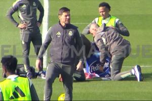 體育資訊11月08日訊 西媒ElDesmarque放出了皇馬訓練的視頻,米利唐受傷坐在水箱上,隊醫(yī)為他纏上繃帶。阿隆索代替他上場完成了團隊訓練。