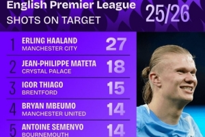 體育資訊11月11日訊 英超聯(lián)賽已經(jīng)進(jìn)行了11輪,squakwa也統(tǒng)計(jì)了本賽季英超射正次數(shù),哈蘭德斷崖領(lǐng)跑。