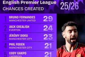 本賽季英超創(chuàng)造機(jī)會(huì)榜: