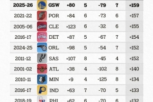 主場(chǎng)龍客場(chǎng)蟲!勇士賽季前12場(chǎng)主客場(chǎng)凈勝分達(dá)159分 本世紀(jì)最懸殊