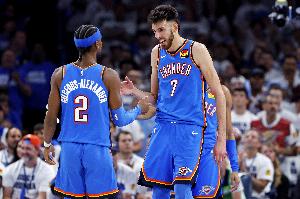 雷霆上賽季68勝14負(fù),首輪橫掃灰熊,次輪4比3擊敗掘金,西決4比1紳士橫掃森林狼,總決賽4比3擊敗步行者,成功奪冠。