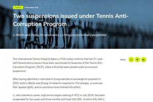 打假球遭罰!官方:中國選手李文夫、張瑾被禁賽,陸鵬宇臨時停賽