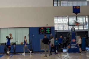 目前歸期未定!艾維手術后首次進行投籃訓練 底角三分6中3