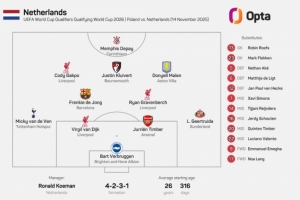 波蘭VS荷蘭首發(fā):萊萬PK范戴克,澤林斯基、加克波、德容出戰(zhàn)