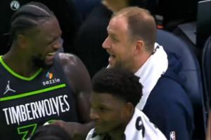 GIF-威少壓哨三雙,蘭德爾和隊友很開心!