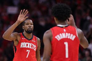 體育資訊11月15日訊 NBA杯小組賽,火箭140-116擊敗開(kāi)拓者。賽后發(fā)揮出色的杜蘭特接受采訪談到球隊(duì)表現(xiàn)。